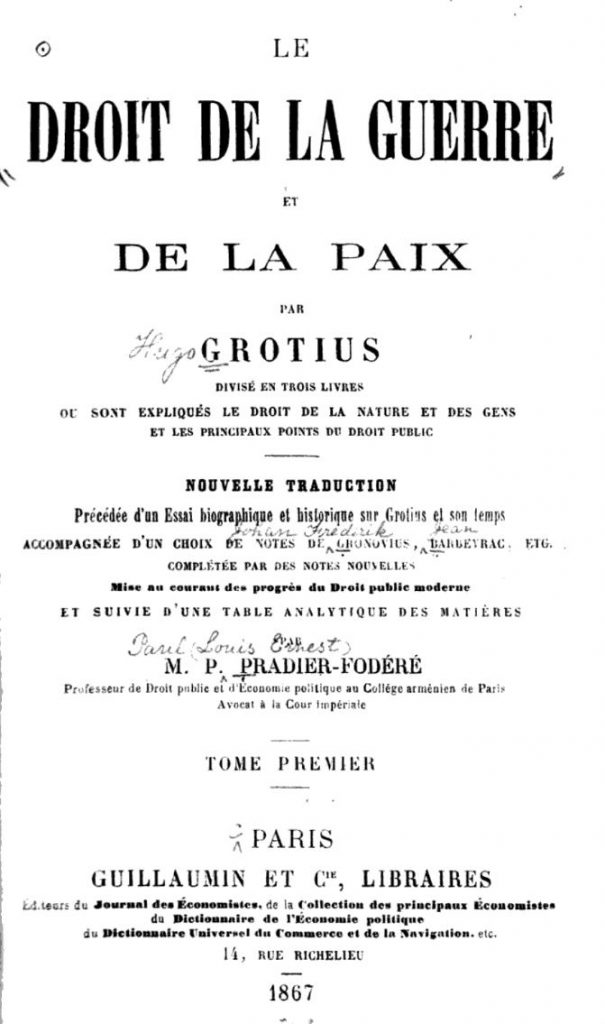هيغو غروتيوس، Hugo Grotius، فيلسوف وعالم إلهيات ولاهوت دفاعي وكاتب مسرحي ومؤرخ وشاعر، شغل منصب القضاء وعرف بكونه عالم اجتماع ورجل دولة، ولد في دلفت بهولندا سنة 1583، وصفه الملك الفرنسي بالمعجزة الهولندية في سنة 1598.