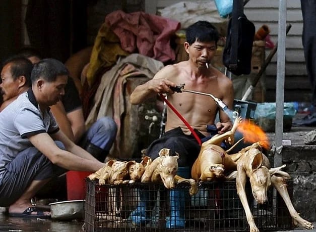 افتتح مهرجان لحوم الكلاب السنوي سيء السمعة يوم الاثنين الماضي في مدينة يولين (الصين). من أجل استهلاكها، تموت في كل سنة الآلاف من الحيوانات متجرعة ألما شديد.