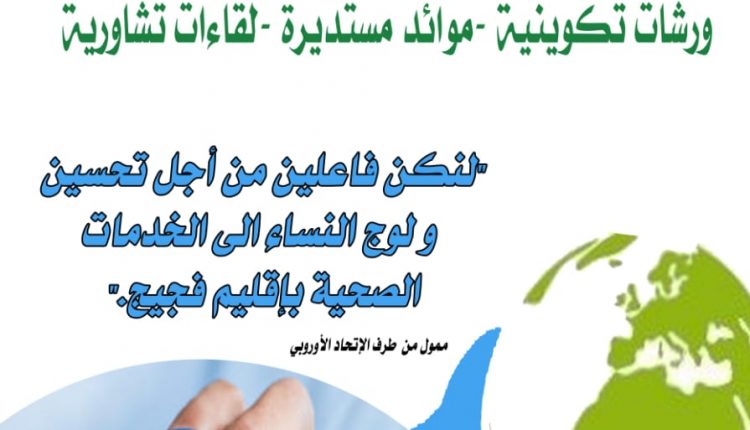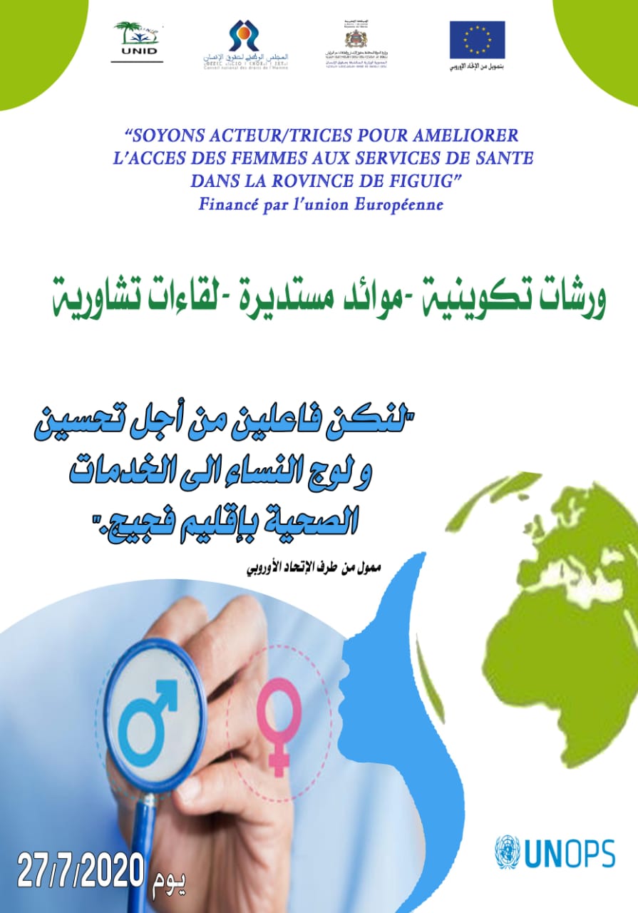 تحتضن مدينة وجدة مجموعة من الأنشطة التكوينية والتحسيسية حول موضوع الحق في الصحة وذلك من 23 إلى 27 يوليوز 2020، من قبل اتحاد المبادرات التنموية في إطار مشروع لنكن فاعلين من اجل تحسين ولوج النساء الى الخدمات الصحية بإقليم فجيج، وذلك ضمن برنامج مشاركة مواطنة الممول من طرف الاتحاد الأوربي والذي يتم تنفيذه من طرف مكتب الأمم المتحدة لخدمات المشاريع.