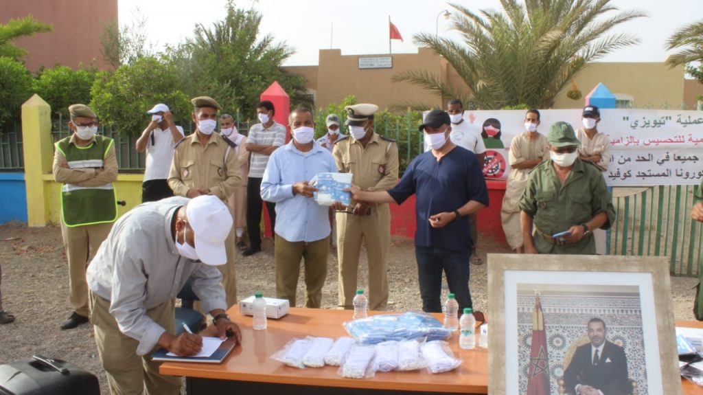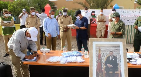 بالموازاة مع ذلك، تتواصل حملة واسعة لتمكين المواطنين والمواطنات من الكمامات النصنوعة من الثوب والقابلة للغسل ولاستعمال متعدد، حيث وزعت 1500 كمامة على هذه الجمعيات للسهر على توزيعها على الساكنة تحت إشراف اللجن المحلية للدواوير.