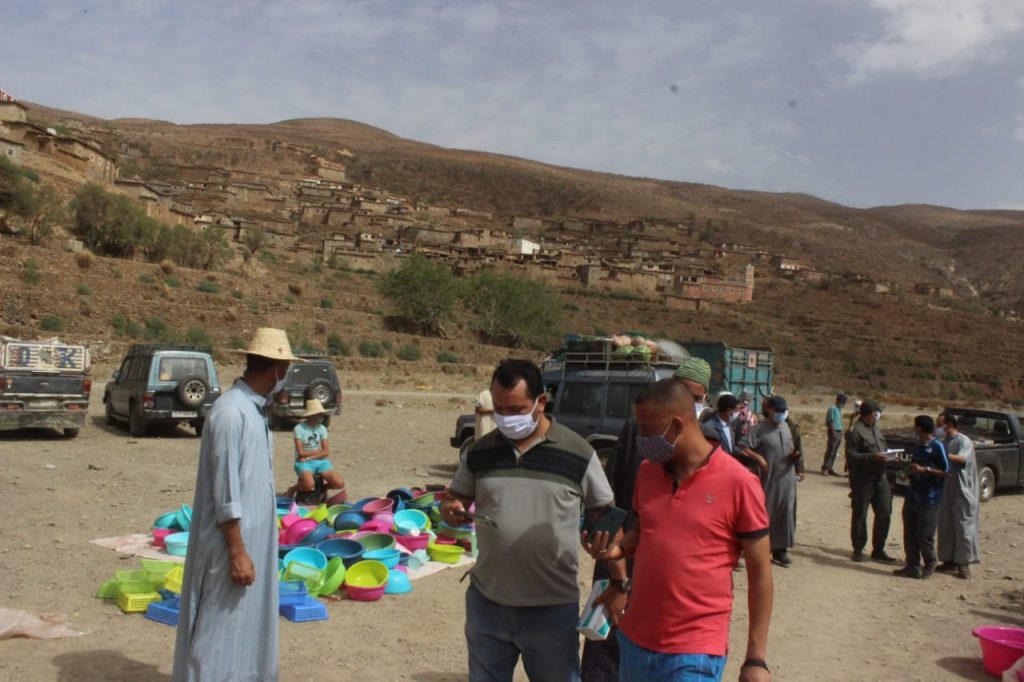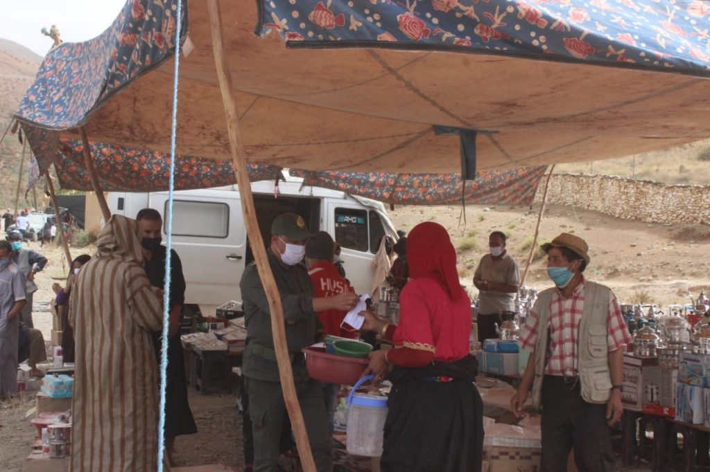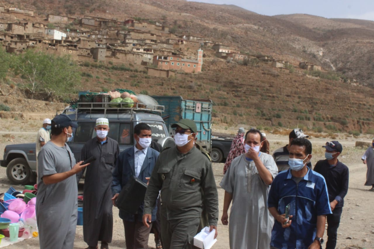 وفي هذا السياق أشرف السيد ” محمد أمبارك داود ” قائد قيادة أركانة دائرة سيدي موسى الحمري عمالة تارودانت و عناصر الدرك الملكي بتمزورت بنفس القيادة و القوات المساعدة و أعوان السلطة و جمعيات المجتمع المدني يوم الأربعاء 26 غشت 2020 ، على توزيع أزيد من 10000علبة من كمامات واقية على ساكنة القرى التابعة لنفوذ جماعتي بيكودين و أركانة و تلمكانت و إيلمياس ، إلى جانب القيام بتحسيس المواطنين بقيادة اركانة بضرورة الحرص على التباعد الجسدي في ما بينهم ، و تطبيق مختلف التدابير الإحترازية و الوقائية لتجنب الإصابة بفيروس ( كوفيد – 19 ) ، خاصة ما يتعلق بقواعد النظافة و السلامة الصحية و تجنب التصافح و إجيارية إرتداء الكمامة .