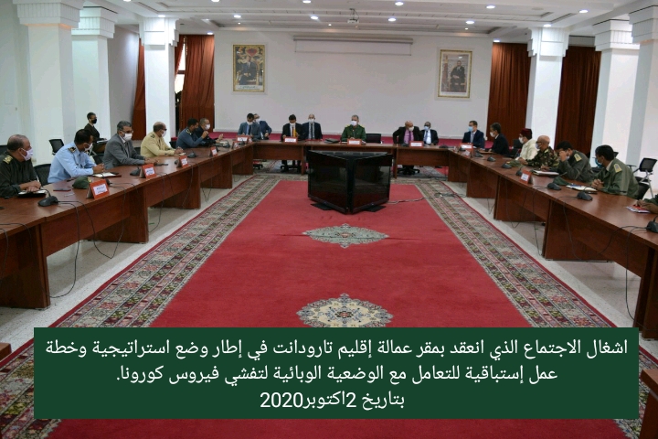 في إطار الاستراتيجية الاستباقية التي اعتمدتها السلطة الإقليمية لتارودانت للرفع من مستوى اليقظة والتتبع و الحذر للحيلولة دون تفشي فيروس كورنا المستجد، اشرف السيد عامل صاحب الجلالة على إقليم تارودانت بتاريخ 02 اكتوبر 2020 بساحة 20 غشت بمدينة تارودانت على إعطاء انطلاقة وتقديم شروحات حول مجموعة من الإجراءات الإستباقية الوقائية المعتمدة في مجابهة تداعيات فيروس كورونا وقد جاءت كالتالي: