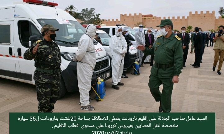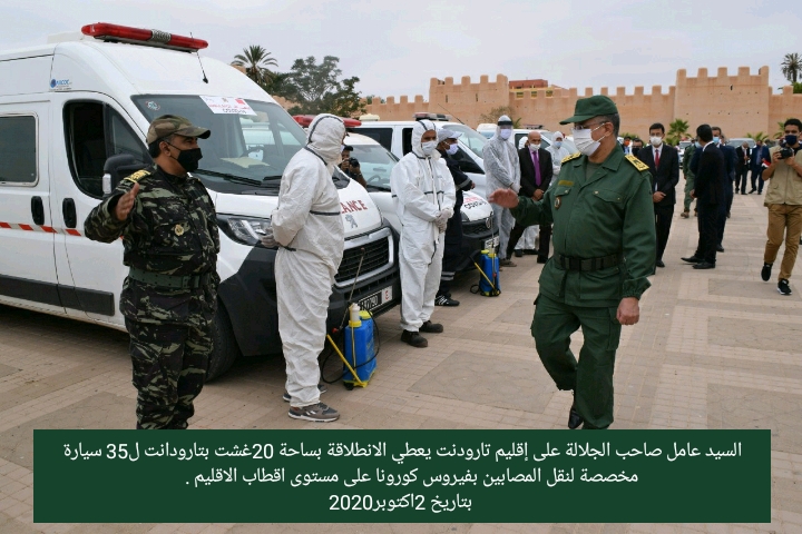 • تقديم عرض واعطاء انطلاقة الأسطول المكون من 35 سيارة مخصصة لإعادة تنقيل المصابين بالفيروس من أجل الاستشفاء بمحل سكناهم ،بعد اخضاعهم للفحوصات المخبرية وتمكينهم من الأدوية اللازمة. هذه السيارات تم توفيرها من طرف المجلس الإقليمي و الجماعات المكونة للأقطاب الستة بالاقليم ومن ضمن هذه السيارات تم تخصيص 4منها لنقل موتى كوفيد 19 ، وتدخل هذه العملية ضمن الاجراءات العملية الاستباقية التي تهدف بالاساس الى التقليص من الفوارق المجالية ، والاستجابة الى متطلبات ساكنة 89 جماعة، فضلا عن تجويد الخدمات الصحية التي تقتضيها المرحلة العصيبة التي يمر بها بلادنا كباقي بلدان المعمور.