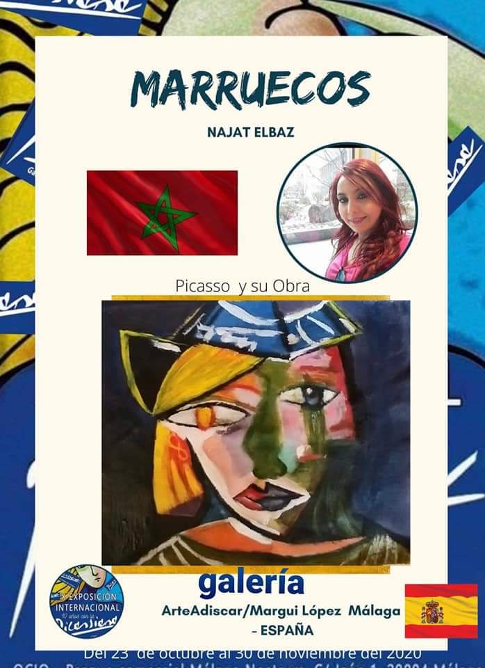 تشارك الفنانة التشكيلية نجاة الباز في معرض بكاليري “ارت اديسكارت” بمدينة مالاكا الإسبانية، والذي سيقام طيلة الأيام من 23 إلى غاية 30 نوفمبر 2020، وذلك إحياء لذكرى الفنان الكبير بابلو بيكاسو.
