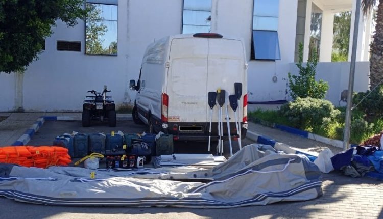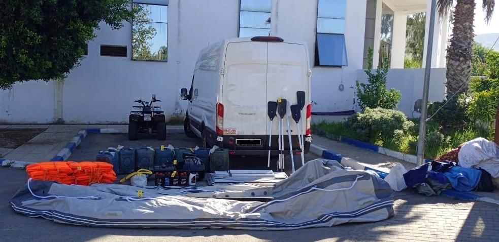وأضاف المصدر أن عملية التفتيش المنجزة بداخل السيارة المضبوطة أسفرت عن حجز زورق مطاطي ومحرك بحري وثمانية مجاديف، علاوة عن حجز مضخة هوائية و13 سترة للنجاة وتسع لترات من زيوت المحركات، بالإضافة إلى 8 حاويات بلاستيكية بها 200 لتر من المحروقات.