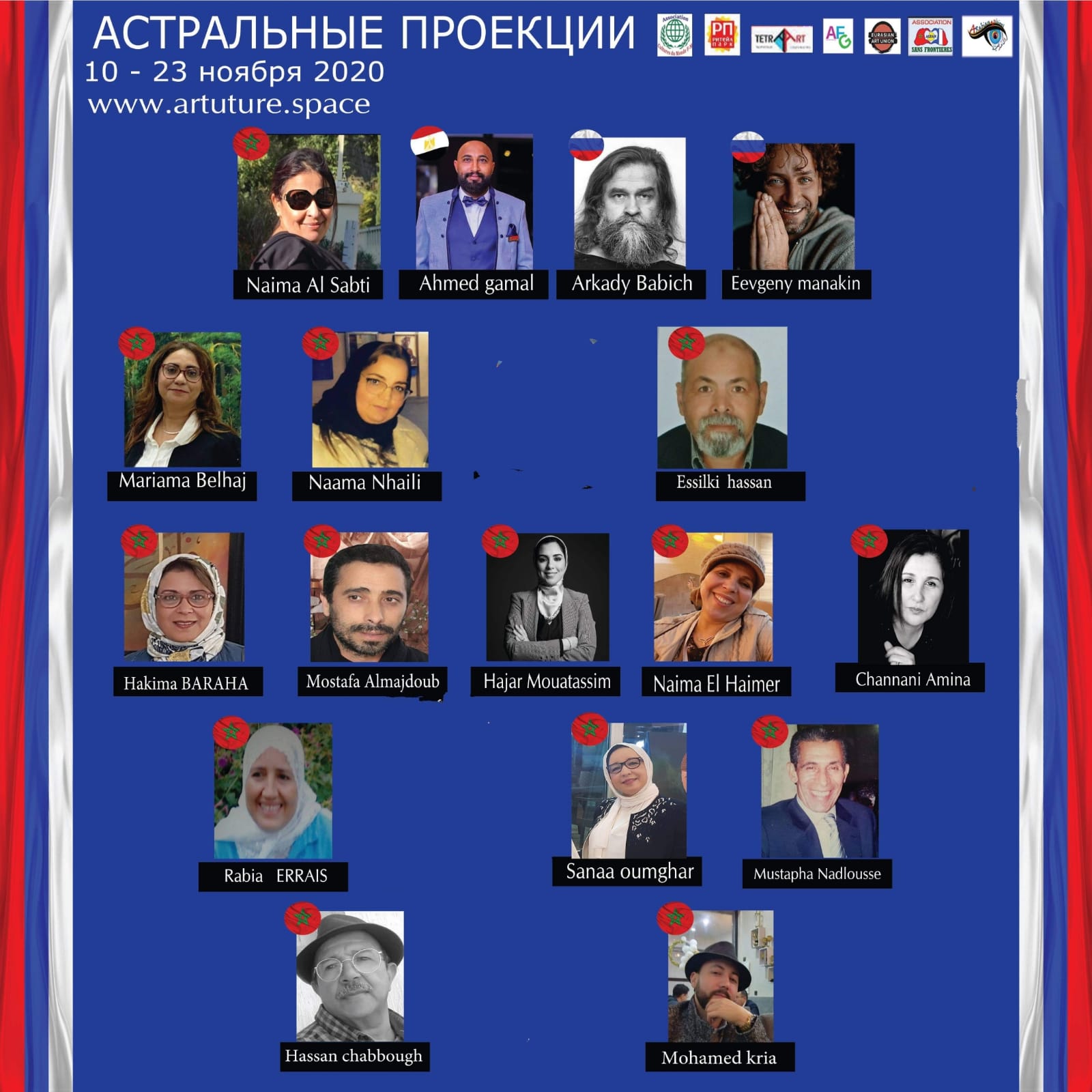 يذكر بأن الفنانين المغاربة المشاركين في المعرض هم : السلكي حسن، مريمة بلحاج، نعمة نحيلي، أمينة الشناني، هجر معتصم، حكيمة برحال، مصطفى ندلوس، سناء أومغار، ربيعة الرايس، محمد أقريع، شبوغ حسن، نعيمة الحيمر، مصطفى العماري .