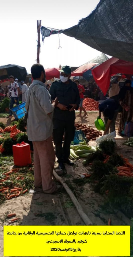 هذا وتجدر الإشارة إلى أن اللجن المحلية تحت إشراف السلطات المحلية و بمعية أعضائها من مصالح امنية وصحية ومنتخبين وفعاليات المجتمع المدني، لازالت تواصل جهودها في مواكبة الحملات التحسيسية الصحية الوقائية بحث الساكنة على الزامية ارتداء الكمامات، واحترام التباعد الجسدي وتفادي التنقلات والتجمعات واستعمال المعقمات حفاظا على صحتهم وسلامتهم وارواحهم، وذلك بحسب ما تقتضيه هذه المرحلة الوبائية العصيبة التي تتطلب التضامن والتآزر لربح رهان تحدي هذه الجائحة المجهولة المصير وذلك وفق تعليمات السلطات العمومية و تماشيا و التوجيهات السامية لصاحب الجلالة الملك محمد السادس نصره الله وايده.