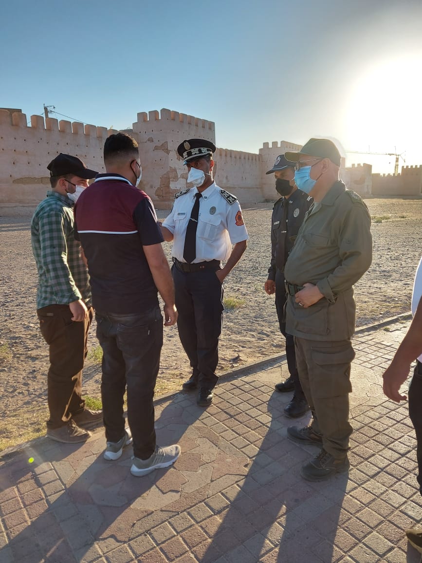 تفعيلا لقرارات اللجنة إلاقليمية لليقظة على مستوى باشوية تارودانت، نظمت السلطة المحلية بالملحقة الإدارية الرابعة برئاسة الحاج بيروك التجاني، رئيس المقاطعة الرابعة يومه الربعاء 18 نونبر 2020 الدي يصادف الذكرى 65 لاستقلال المملكة ،حملة واسعة تهدف بالأساس لإخلاء جميع ملاعب القرب والحدائق و الساحات العمومية معزجر المخالفين لقانون حالة الطوارئ الصحية فيما يخص إجبارية ارتداء الكمامات بحيث أحيل حوالي 21 شخص بنفود الباشوية على مصلحة الديمومة بمقر الأمن الإقليمي من أجل تحرير محاضر زجرية في حقهم ،كما نثمن هده التدخلات التي تأتي في وقت عرفت فيه مدينة تارودانت منحى تصاعدي خطير فيما يخص عدد الإصابات بالفيروس مما انعكس على العدد المضطرد للوفيات وكل هدا راجع بالأساس الى استهتار الساكنة وعدم التزامها بارتداء الكمامات وعدم التباعد بل وفي بعض الأحيان حضور ولائم بعيدا اعين السلطة. لدا نهيب مرة أخرى بجميع سكان تارودانت عدم ارتياد الأماكن العمومية كالساحات و الحدائق والإبتعاد عن التجمعات والولائم والإكتفاء بتقديم التعازي او التهاني بالهاتف.