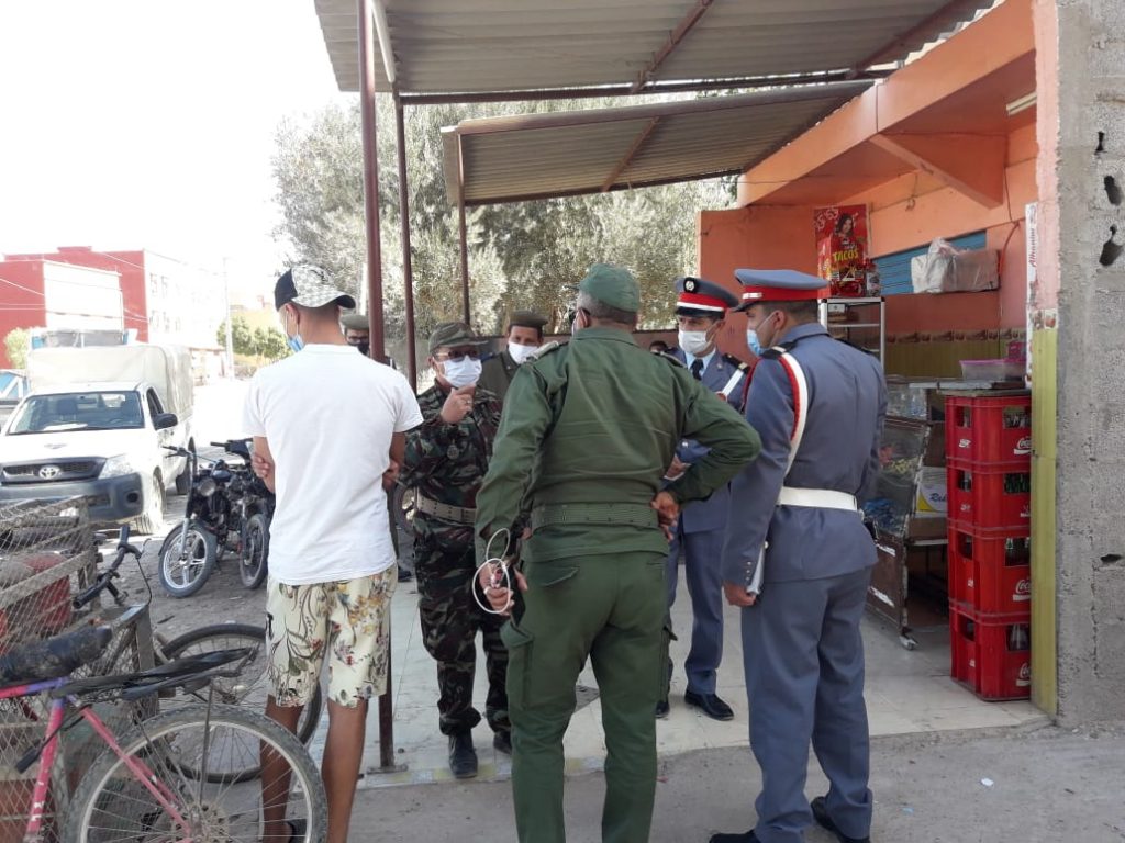 تنفيذا لتعليمات السيد عامل إقليم تارودانت و طبقا لبلاغ اللجنة إلاقليمية لليقضة ؛ نظمت السلطة المحلية بقيادة احمر هذا اليوم 18 نونبر 2020 ؛ في إطار لجنة اليقظة المحلية ، بحضور عنصري الدرك الملكي و عناصر الحرس الترابي للقوات المساعدة بقيادة احمر ، حملة واسعة النطاق بكل دواوير النوايل– الحومر– البيضة– حنصالة– بعقيلة بجماعة احمر لكلالشة و منطقة اولاد ابراهيم و البعارير بجماعة زاوية سيدي الطاهر ، بهدف زجر مخالفي قانون حالة الطوارئ الصحية خصوصا إجبارية ارتداء الكمامة و أثناء هذه الحملة تم إتخاذ الإجراءات التالية: