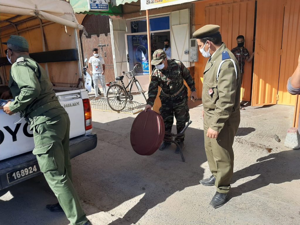 -إغلاق محل للأكلات الخفيفة و محل لبيع الخبز والحلويات وحجز طاولتي و05 كراسي بدوار الحومر جماعة احمر لكلالشة ، بعد افتتاح حديث، لعدم التوفر على تراخيص الاستغالال القانونية.
