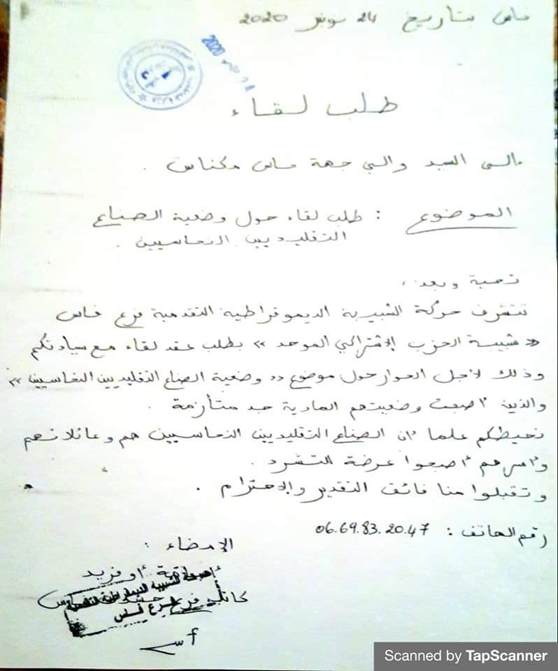 وجهت حركة الشبيبة الديمقراطية التقدمية فرع فاس “شبيبة الحزب الاشتراكي الموحد” رسالة إلى والي جهة فاس مكناس يطلبون من خلالها قد لقاء للحوالشبيبة الديمقراطية التقدمية فرع فاسار حول موضوع “الشبيبة الديمقراطية التقدمية فرع فاس الصناع التقليديين النحايسية “.
