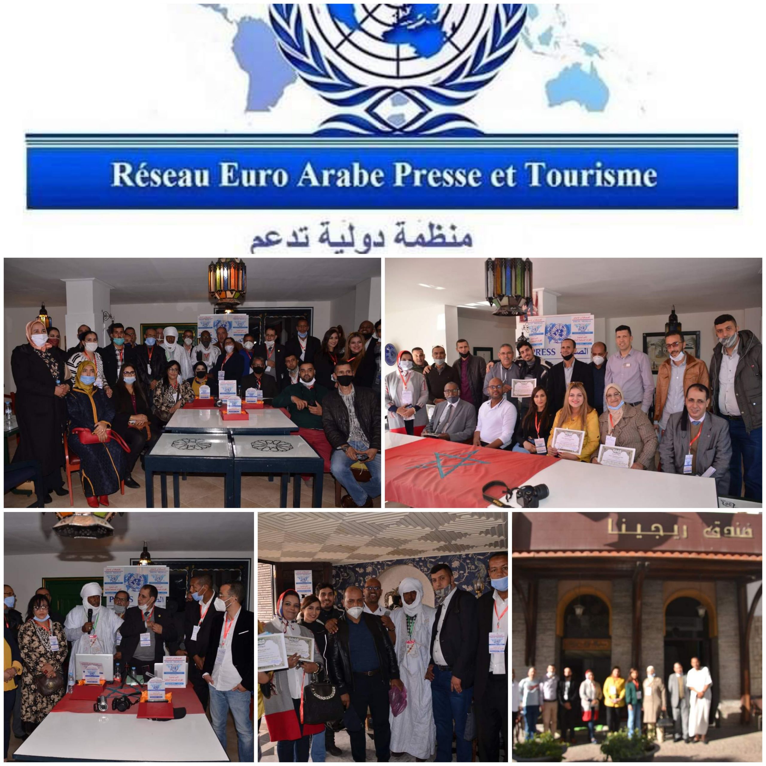 في إطار مبادئ و أهداف الشبكة الأوروعربية للصحافة والسياحة وبمناسبة اليوم الوطني للإعلام؛ نظمت الشبكة مؤتمرها الرابع أيام 21 و 22 نونبر 2020 بفندق ريجينا بتطوان من أجل تأسيس : ” الحملة الدولية لدعم الأمم المتحدة و القوات المسلحة الملكية ” بحضور و تضحية معنوية و مادية لعدد كبير و وازن من الأعضاء والتنظيمات من جميع جهات المغرب تتقدمهم وفود الصحراء المغربية.