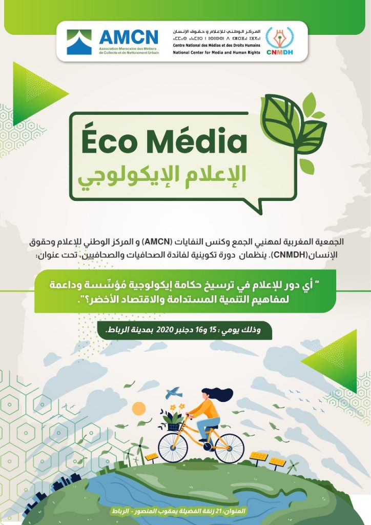 تحت إشراف رئيس الجمعية المغربية لمهنيي الجمع وكنس النفايات AMCN الاستاذ عبدالوافي سعيد الفكيكي وبشراكة مع المركز الوطني للإعلام وحقوق الإنسان CNMDH الذي يرأسه الدكتور إبراهيم الشعبي ،نظمت صباح اليوم بالرباط دورة تكوينية لفائدة الصحافيات والصحافيين ايام 15 و16 دجنبر، بفندق لوريف، تحت عنوان ” أي دور للإعلام في ترسيخ حكامة أيديولوجية مؤسسة وداعمة لمفاهيم التنمية المستدامة والاقتصاد الأخضر “.