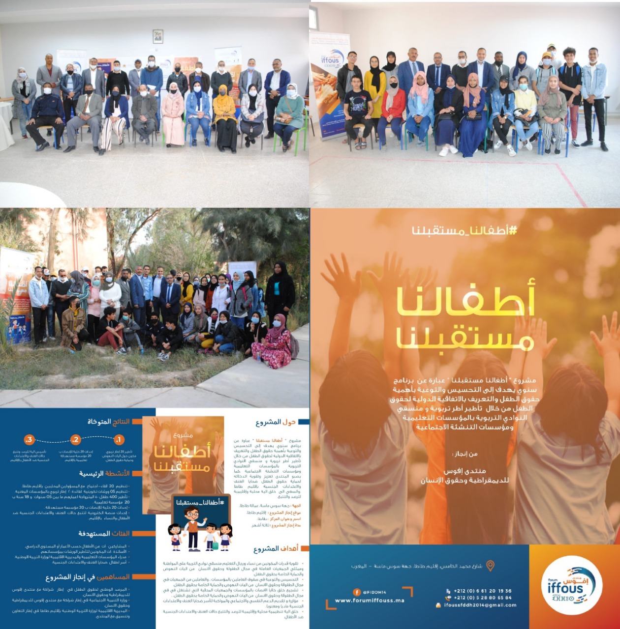 يندرج المشروع في إطار الشراكة مع المرصد الوطني لحقوق الطفل وبتنسيق وتعاون مع المديرية الإقليمية لوزارة التربية الوطنية بطاطا ومركز الاستماع “بيت المواطن” الممول من طرف وزارة التنمية الاجتماعية ووكالة التنمية الاجتماعية التابع للمنتدى، استفاد منها 160 تلميذ وتلميذة بالمؤسستين التأهيليتين الجديدة وعلال بن عبدالله.