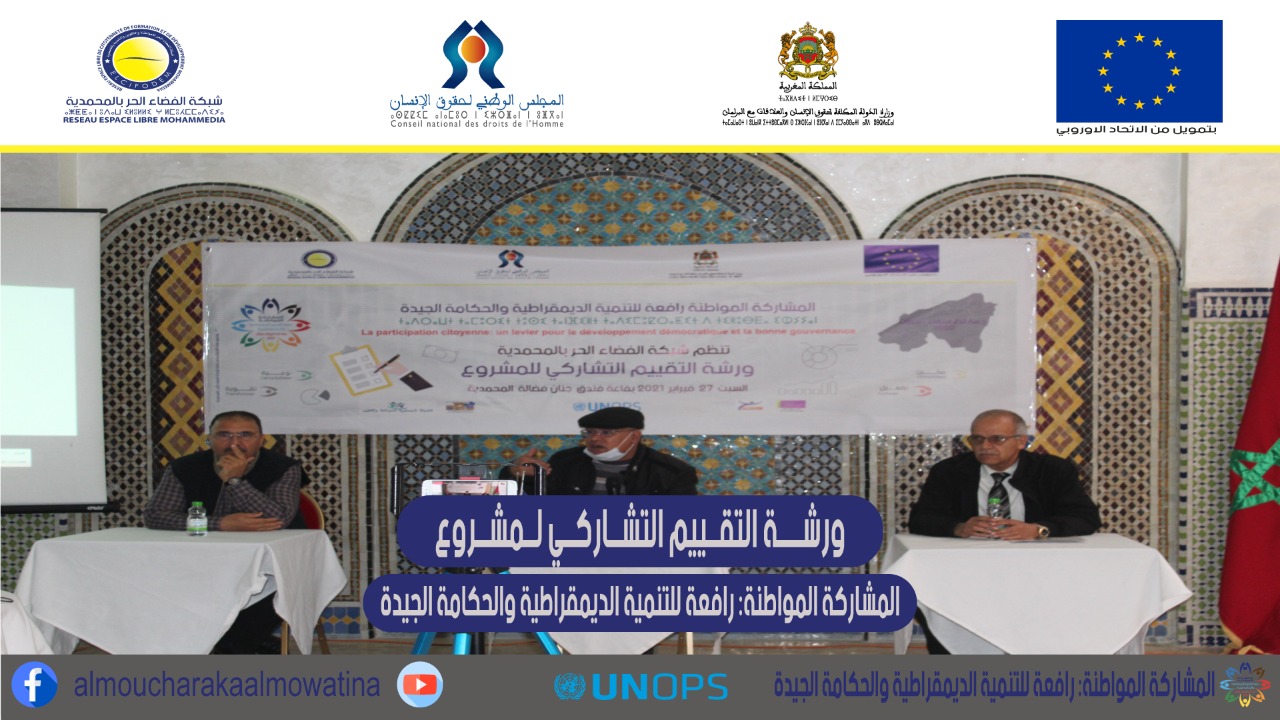 نظمت شبكة الفضاء بالمحمدية، أول أمس السبت 27 فبراير 2021، ورشة التقييم التشاركي لمشروع “المشاركة المواطنة رافعة للتنمية الديمقراطية والحكامة الجيدة”، والذي يمتد خلال الفترة من 16 دجنبر 2019 إلى مارس 2021. والتي تهدف من خلالها إلى تحديد نقط قوة ونقط ضعف المشروع، الفرص المتاحة في مجال المشاركة المواطنة، الاكراهات والتحديات التي يجب مواجهتها، والاستراتيجيات المستقبلية.