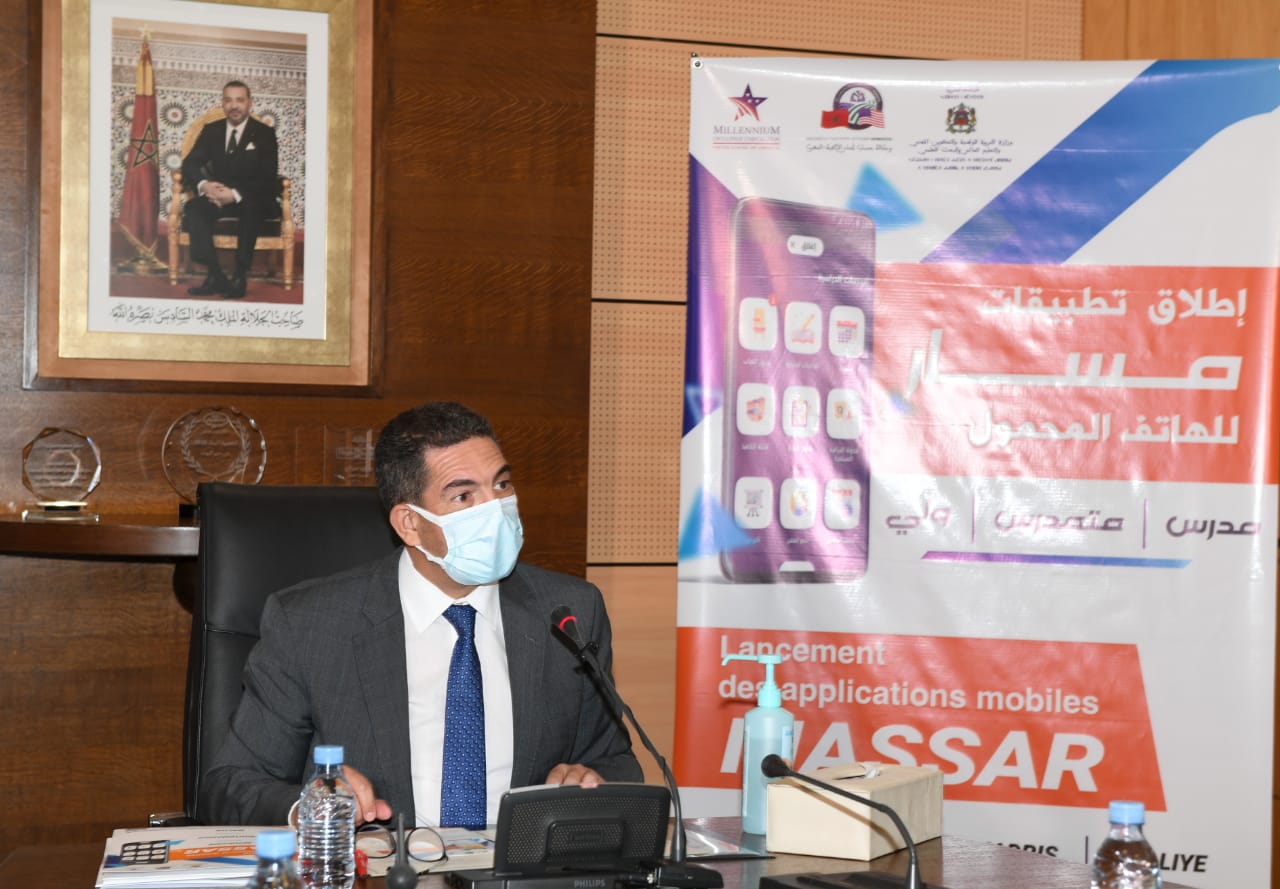 ترأس السيد سعيد أمزازي، وزير التربية الوطنية والتكوين المهني والتعليم العالي والبحث العلمي، بمعية المديرة العامة لوكالة حساب تحدي الألفية-المغرب، السيدة مليكة العسري، والمديرة المقيمة المساعدة لهيئة تحدي الألفية بالمغرب، السيدة كيري موناهان، اليوم، مراسم حفل إعطاء الانطلاقة الرسمية لثلاثة تطبيقات جديدة للهاتف المحمول لتيسير الولوج إلى خدمات نظام المعلومات “مسار”.