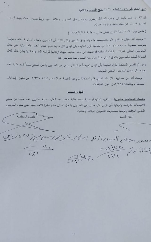 وأكد “عاشور” على إحترامه حكم القضاء المصرى النزيه، وأنه كان على ثقة كبيرة فيه، وأن الأمر لم ينته؛ لأن هناك التجهيز لثلاث جنح أخرى ضد المحكوم عليها “بدرية طلبة” وآخرين فى وقائع أخرى، وأن الحكم الصادر اليوم نهائى واجب التنفيذ.