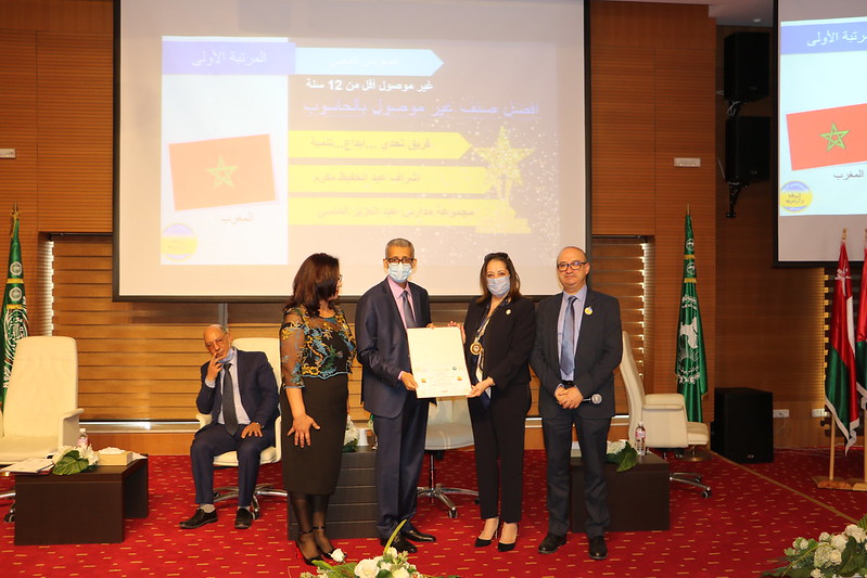 وأسفرت منافسات هذه التظاهرة، التي تقام لأول مرة على المستوى العربي، وتميزت بمشاركة مغربية نوعية، بلغت 2333 مشاركة من بين 13352 نشاطا مسجلا على منصة الأسبوع العربي للبرمجة، من مختلف الأكاديميات الجهوية للتربية والتكوين، عن تتويج ثلاث مؤسسات تعليمية مغربية في صنف مسابقة المعرض الذهبي صنف “غير الموصول بالحاسوب”، حيث حصلت مجموعة مدارس عبد العزيز الماسي بالمديرية الإقليمية اشتوكة أيت باها بالأكاديمية الجهوية للتربية والتكوين جهة- سوس- ماسة، على المرتبة الأولى محرزة الميدالية الذهبية وذلك في الفئة العمرية الأقل من 12 سنة، كما أحرزت ثانويتا ابن النفيس الإعدادية امزوطة بالمديرية الإقليمية شيشاوة أكاديمية جهة مراكش- آسفي في الفئة العمرية ما بين 12 و15 سنة والثانوية التأهيلية 3 مارس سيدي رضوان بالمديرية الإقليمية وزان أكاديمية جهة طنجة- تطوان- الحسيمة، في الفئة العمرية ما بين 15 و18 سنة المرتبة الثانية، منتزعتين، بذلك، ميداليتين فضيتين، فيما احتلت مدرسة صلاح الدين الأيوبي ومدرسة مولاي يعقوب، التابعتين للمديرية الإقليمية مولاي يعقوب بأكاديمية جهة فاس مكناس، المرتبة الثالثة، الأولى في مسابقة المدرسة الذهبية والثانية في مسابقة النشاط الذهبي.