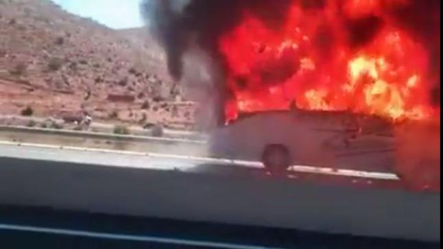 حافلة متوجهة الى مراكش تحترق بطريق الموت “امسكرود”