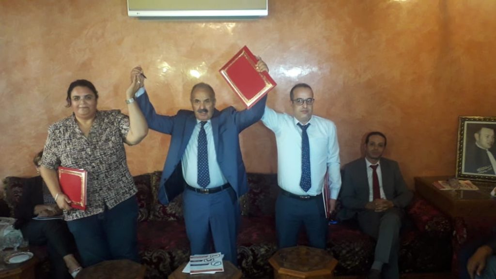 وقد وقع ميثاق التحالف أمناء الاحزاب الثلاث كل من السادة الحسن مديح الأمين العام لحزب “الوسط الاجتماعي”، و سعيد الغنيوي الكاتب العام لحزب “النهضة ” و إلهام بلفحيلي الأمينة العامة لحزب “الاتحاد المغربي للديمقراطية “