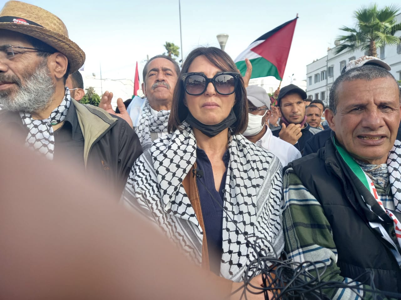 وطالبت منيب بالعدول عن هذا القرار الغاشم قرار التطبيع وأن كل من ساهم فيه من قريب او بعيد فهو مسؤول أمام هذا الشعب وأمام الشعب الفلسطيني، معتبرة أن قضية الشعب الفلسطيني يعتبرها المغاربة قاطبة قضيتهم ولا يمكن لنا أن نختلق أي شيئ لكي نكسر هذه الهمة الشعبية المغربية العارمة التي تعرفها أكثر من 60 مدينة في نفس الوقت وفي هذه اللحظة بالذات . وقد اعتبرت منيب ان الأحزاب المغربية المناضلة التقدمية الديمقراطية حاضرة اليوم لدعم فلسطين وضد التطبيع وذلك الى جانب القوى النقابية وقوى المجتمع المدني ، بينما الأحزاب المخزنية غائبة ولا نسأل عنها أصلا لانها تخون الشعب المغربي .