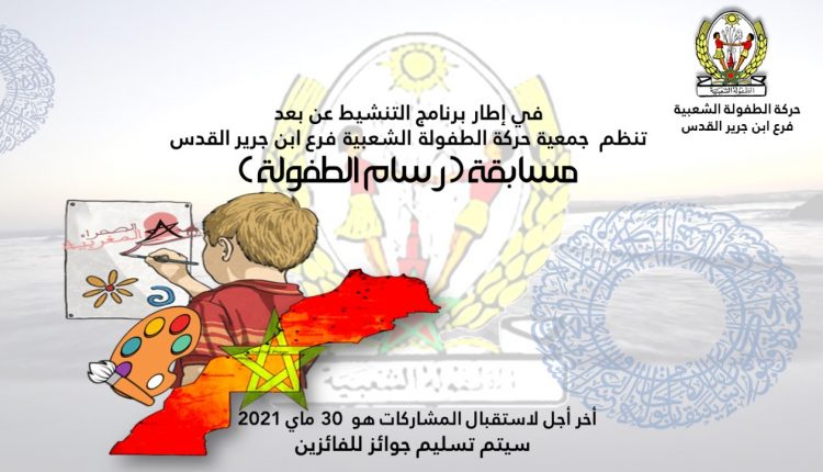 تنظم حركة الطفولة الشعبية فرع ابن جرير القدس مسابقة ( رسام الطفولة )، في نسختها الأولى حول : “قضية الصحراء المغربية ” وذلك إلى غاية 30 ماي 2021 وهو آخر أجل لاستلام المشاركات.