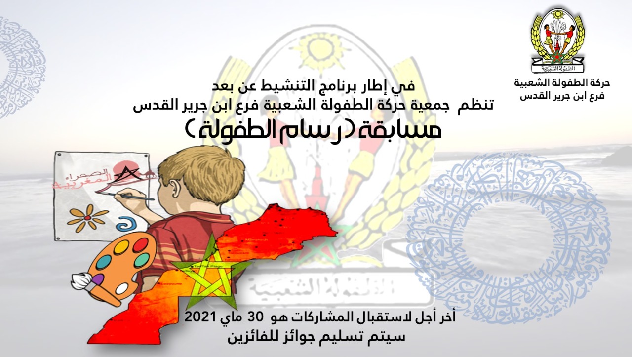 في اطار التنشيط عن بعد وبهدف خلق روح التباري بين أطفال حركة الطفولة الشعبية وتطوير ملكة الإبداع والتعبير الفني لديهم من جهة، ومن جهة أخرى خلق فرصة للمواهب في فن الرسم من أجل التعبير عن حب الوطن والتضحية والفداء من أجله والدفاع عنه بدفع الغالي والنفيس من أجل حمايته ورفعته وعزته بين الأمم.