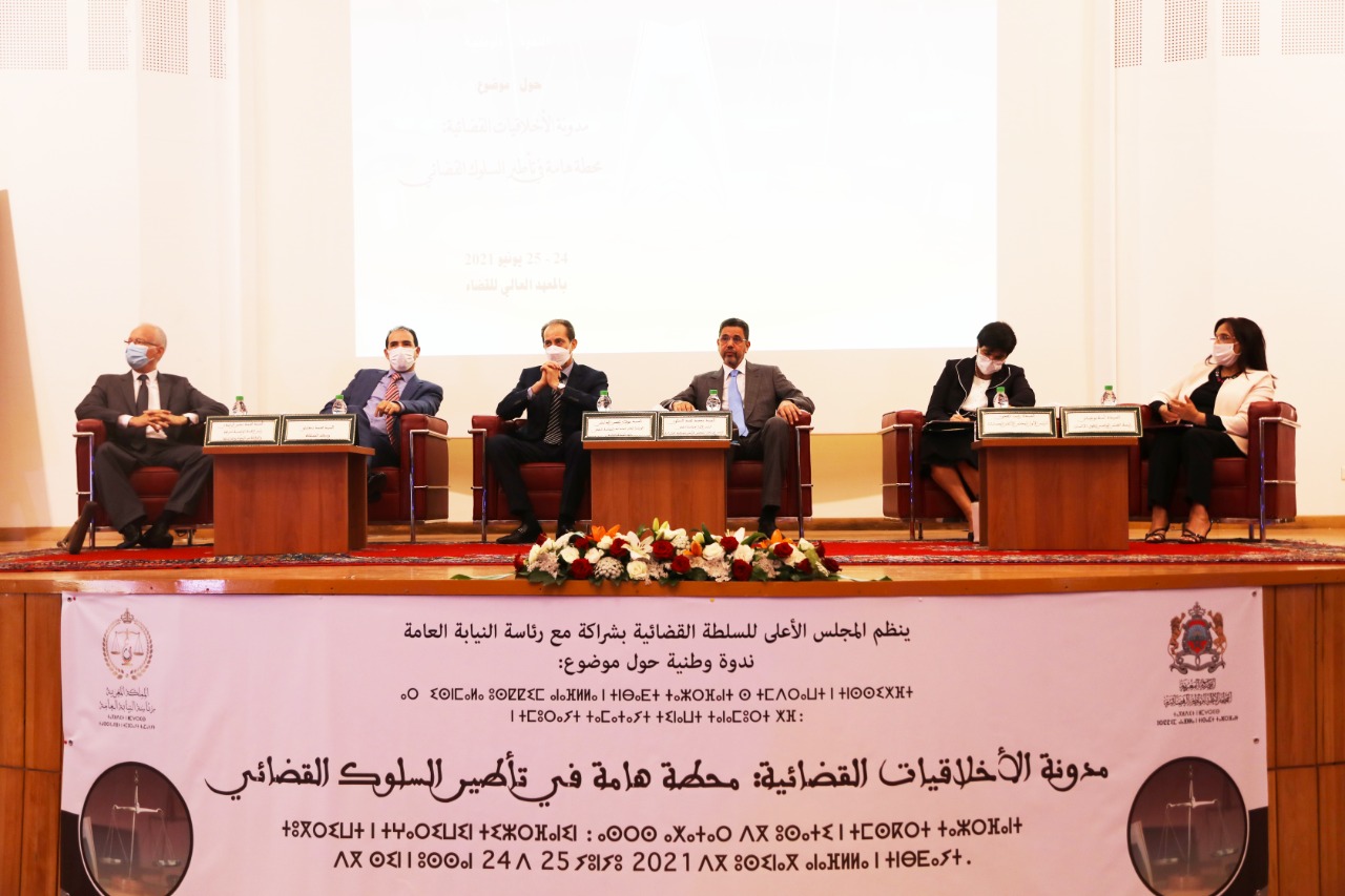 إنه لمن دواعي سروري أن أتواجد معكم في هذا اللقاء الذي يلتئم اليوم في هذا الفضاء بدلالته الرمزية، لقاء علمي ببعد أخلاقي، ارتضيناه مجالا للحوار الرصين، والنقاش العميق، والتعبير عن الإرادة الصادقة في أن نجعل من ذكائنا الجماعي، آلية مهمة لبلورة فهم مشترك لفضيلة الأخلاق المهنية، وتسليط الضوء على بعض القيم والمفاهيم والمبادئ المؤطرة لمدونة الأخلاقيات القضائية، كمرجعية تأطيرية أو ما يمكن أن أسميه بـ «الآليات الموازية الناظمة للسلوك القضائي»، وأن نجعل من إبداعنا الخلاق سبيلا للاهتداء إلى أفضل السبل في فهم محدداتها، وفي ضمان صفات المروءة وعلو الهمة والوقار، واستحضار مقومات ومظاهر الاستقلال والحياد والتجرد والموضوعية والنزاهة…