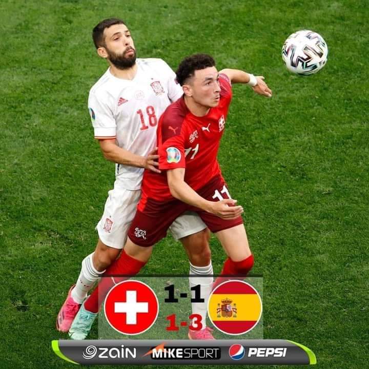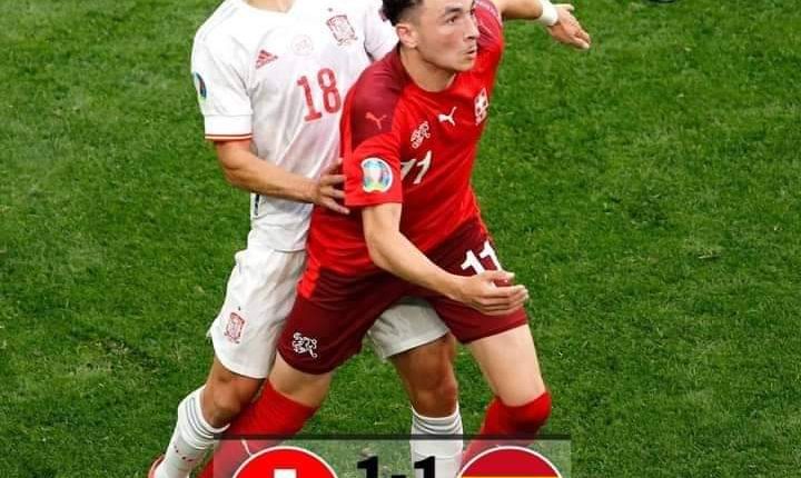 انتهت اولى قمم ربع نهائي يورو 2020 بين المنتخب الاسباني ونظيره السويسري بتأهل الاول بعد الاحتكام لركلات الترجيح .