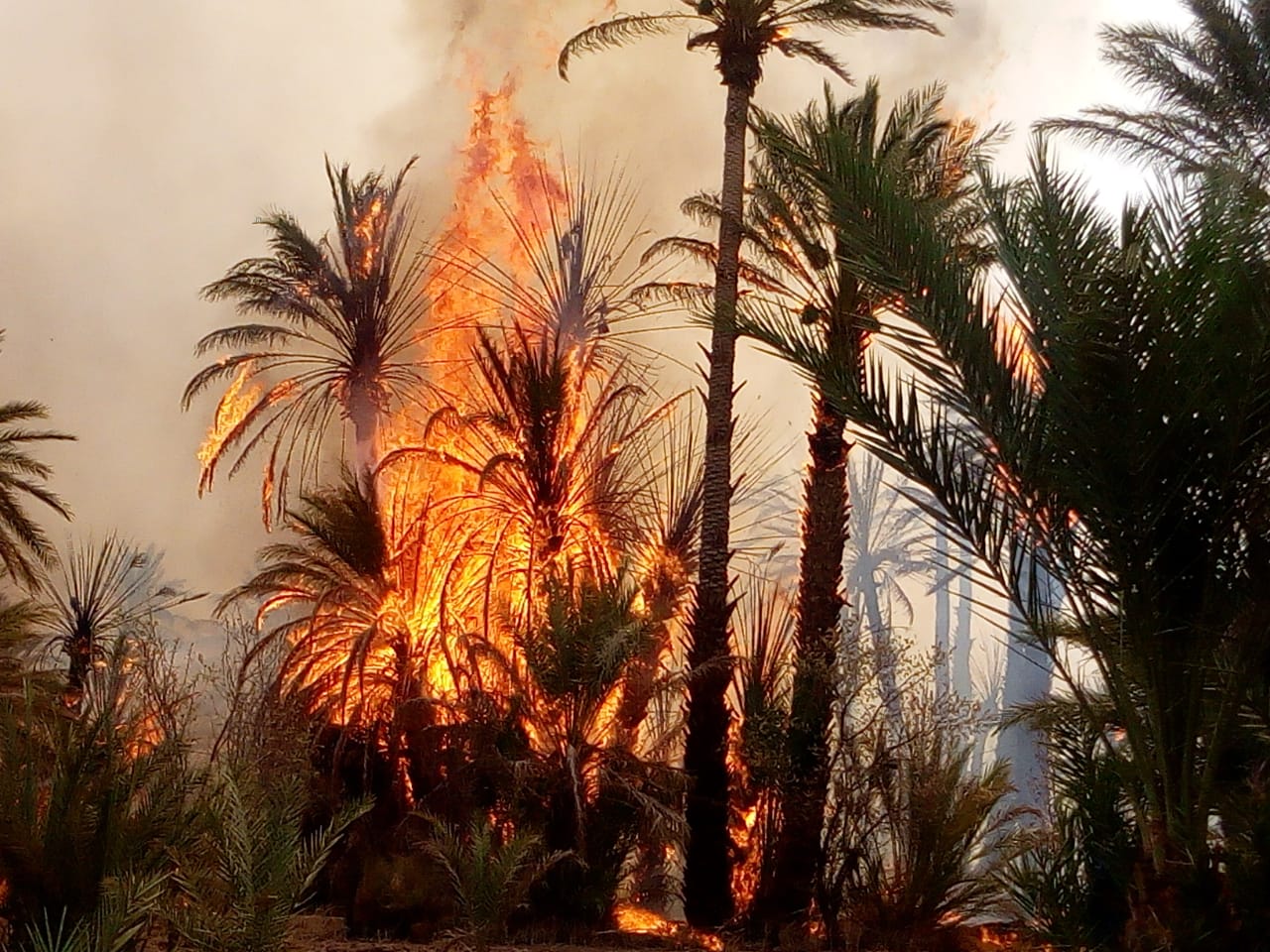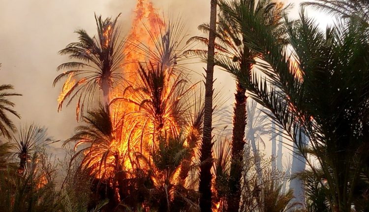 وذكرت مصادر مطلعة لموقع “دنابريس”، أن الحريق شب حوالي الساعة الحادية عشر صباحا، بحقول واحة آيت عبد الله وامتد إلى واحة آيت طغات، مخلفا احتراق أزيد من 200 نخلة، على مساحة تقدر بأربعة كيلومترات مربعة.