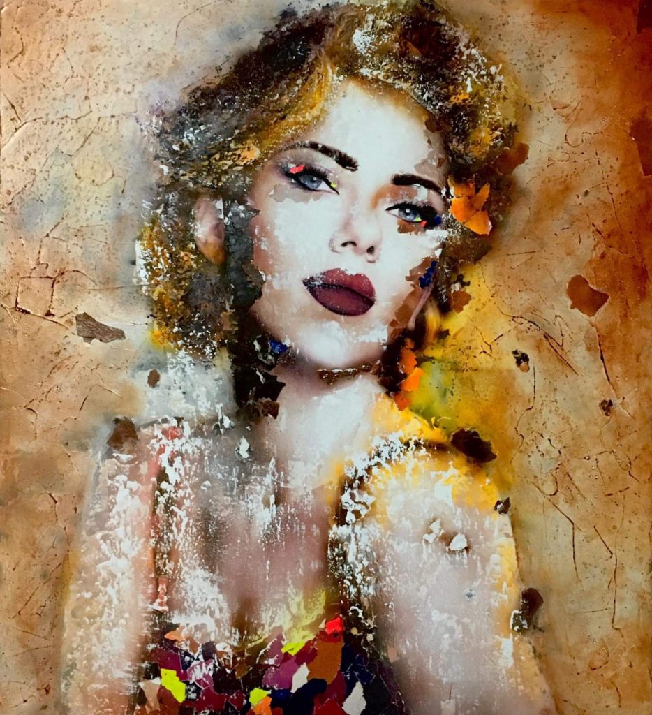 لوحتي الفنّيَة تحت عنوان ” شهرزاد”، رسمتها في ليالٍ صيْفيّة علي لوحة الكانفاس بأُسلوبي الخاص و بطرق حديثة و مختلفة مُستلهمة من سحر خيال شهرزاد التي غيّرت مسار الأحداث و قلبت الواقع بإبداعها و تفنّنها و اختلافها عن بقيّة النّساء، حكايات مشوّقة و هادفة بين الواقع و الخيال ، كانت علاجا نفسيّا، و طريقة خاصة بها ، كل ليلة تُشْرب الملك جُرعة من دواء العبقريّة و الحنكة : فكر و أدب و فلسفة…!