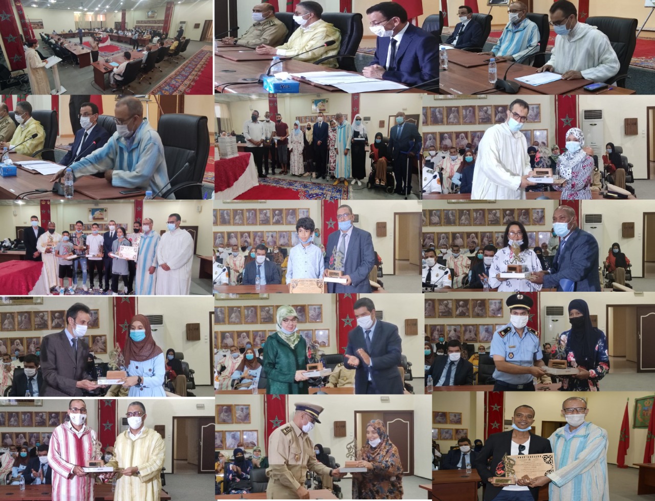 بعد ذلك انطلق حفل تتويج التلميذات والتلاميذ المتفوقين والمتميزين - التلميذات والتلاميذ في وضعية اعاقة والحاصلين على شهادة الدروس الابتدائية