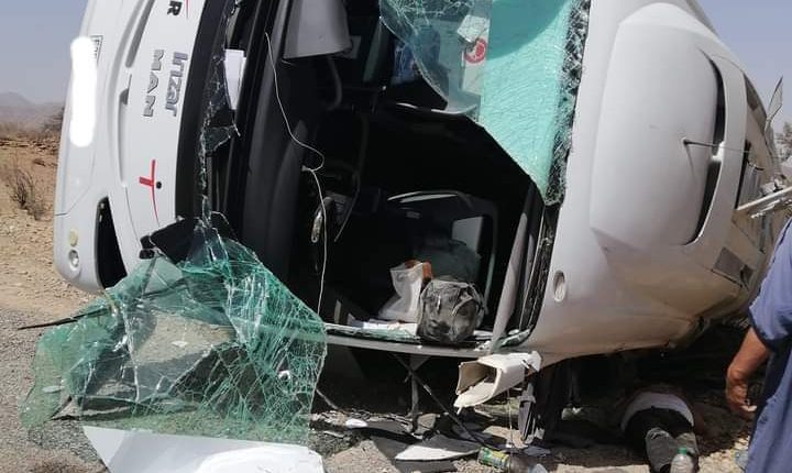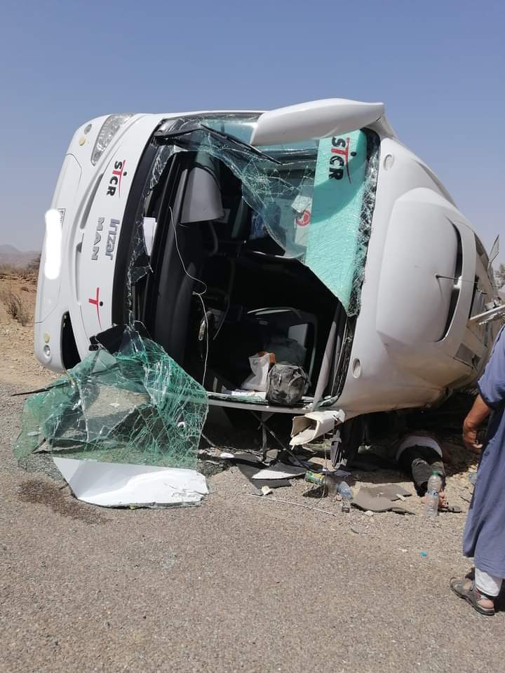الحافلة كانت متجهة نحو مدينة تافراوت قادمة من أيت باها، وعلى متنها 3 أشخاص فقط سائق ومساعده، وسيدة، وبعد بلوغها أحد المنعرجات بتيزي نتكوشت، فقد السائق السيطرة على القيادة ما أدى لانزلاقه والانقلاب على قارعة الطريق في مشهد وصف بـ”المروع” وهو ما خلّف إصابة السائق برضوض وجروح متفاوتة الخطورة على مستوى الظهر، فيما لحقت بالمركبة أضرار جسيمة.