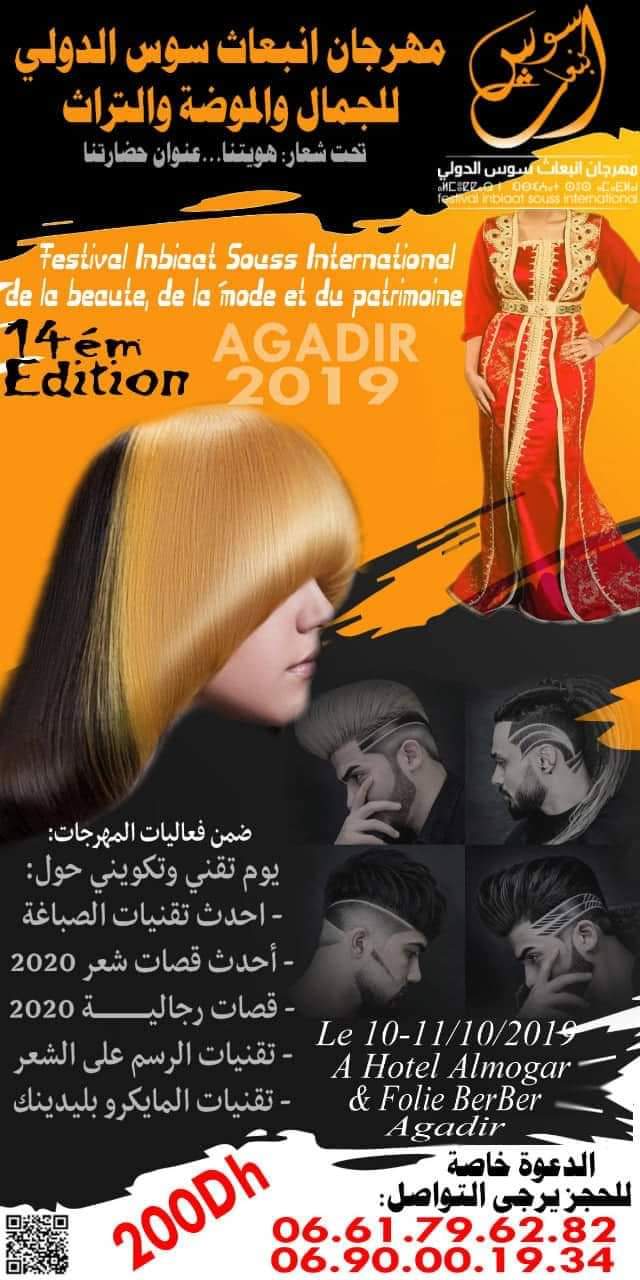 بعد النجاح المتميز الذي عرفته الدورات الثالثة عشرة السابقة لمهرجان انبعاث سوس الدولي للحلاقة والتجميل والموضة على جميع المستويات، اختارت الجمعية مواصلة المشوار بخطوات حثيثة وبأفكار جديدة وبإبداعات رائعة كانت ولازالت وستبقى عنوانا لقدرات الحلاق والمزين والمصمم المغربي والعربي عامة.
