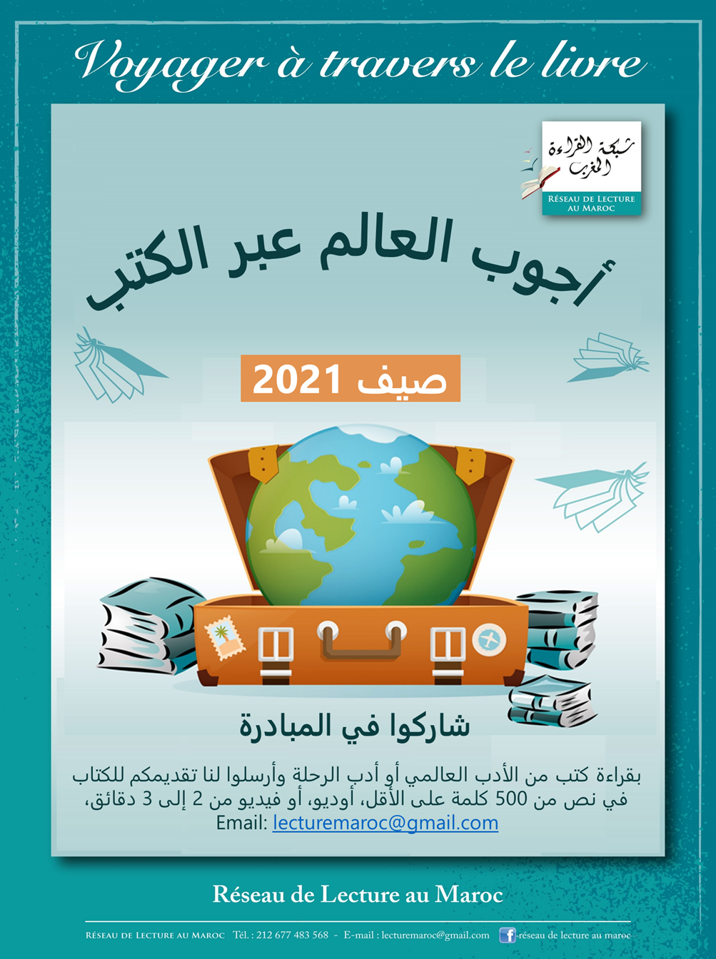 ندعو للمشاركة في هذه المبادرة بأكبر قدر من السفر عبر الكتب، اختاروا كتبا تسافر بكم إلى أماكن بعيدة ومختلفة وباللغة الأقرب إلى قلبكم. ستقدم في أخر شهر غشت جوائز لأحسن تقديم