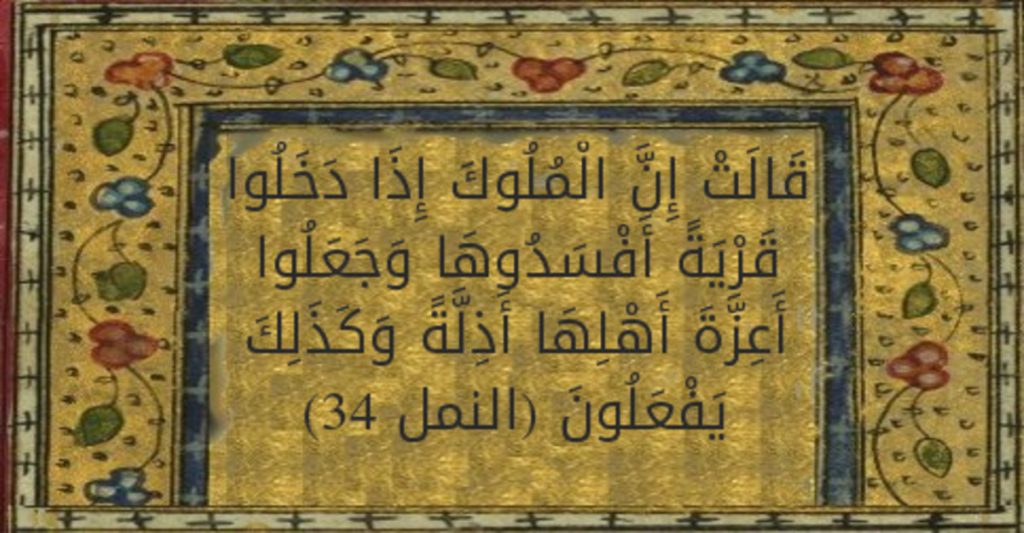 محمد حاجب يتعسّف في تفسير الآية الكريمة “..إِذَا دَخَلُوا قَرْيَةً أَفْسَدُوهَا وَجَعَلُوا أَعِزَّةَ أَهْلِهَا أَذِلَّةً ۖ وَكَذَٰلِكَ يَفْعَلُونَ”