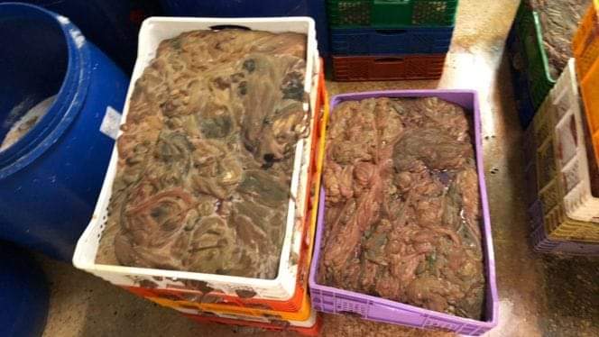 وذكر بلاغ للمديرية العامة للأمن الوطني، أن تنفيذ هذه العملية ،التي تروم حفظ الصحة العامة ، جرى داخل وحدة صناعية بمنطقة “مداغ” التي تبعد بحوالي 11 كيلومترا عن مدينة بركان في اتجاه مدينة السعيدية، حيث أسفرت عمليات التفتيش المنجزة عن حجز العشرات من البراميل التي تحتوي على حوالي 30 طن من أحشاء المواشي المستعملة في صناعة وتحضير النقانق، مخزنة في ظروف تنعدم فيها شروط الصحة والسلامة المفروضة في هذا النوع من المنتجات الغذائية، فضلا عن ضبط معدات ومواد أولية تدخل في تحضير وتلفيف وتجميع هذه المواد الاستهلاكية وتوزيعها على الصعيد الوطني.