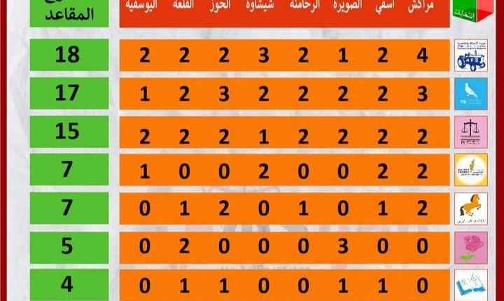 ومُنحت 5 مقاعد لحزب الإتحاد الإشتراكي، يليه حزب التقدم والإشتراكية ب 4 مقاعد، فيما تحصّل كل من حزب العدالة والتنمية وحزب الحركة الديوقراطية الاجتماعية على مقعد واحد لكل واحد منها.