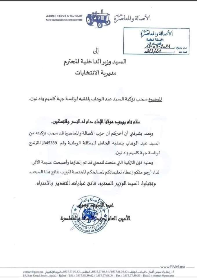 وقد أوعز بلفقيه، الموقع على البلاغ المذكور بصفته منتخباً لمجلس جهة گلميم-واد نون، انسحابه “لاعتبارات سيعرفها الجميع” دون خوض في التفاصيل.