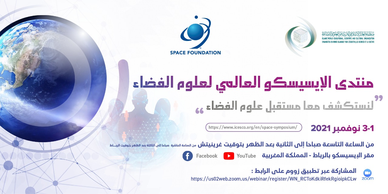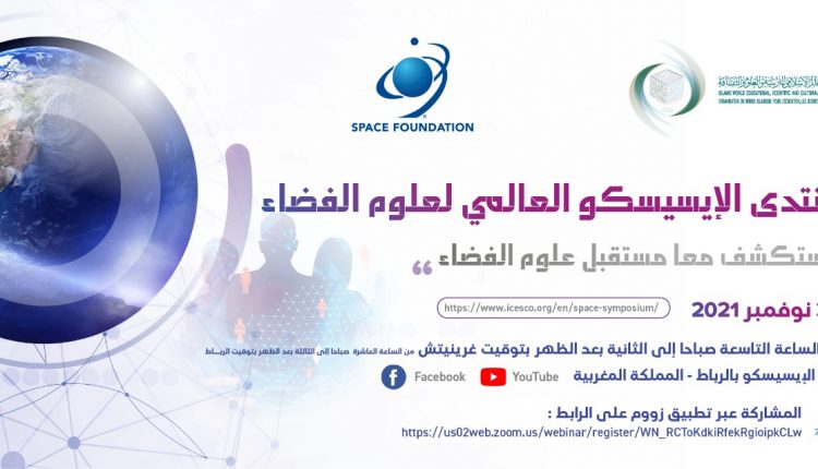 تعقد منظمة العالم الإسلامي للتربية والعلوم والثقافة (إيسيسكو)، ومؤسسة الفضاء الأمريكية، في الأول من نوفمبر 2021 وعلى مدى ثلاثة أيام، منتدى الإيسيسكو العالمي لعلوم الفضاء، تحت شعار “معا من أجل استكشاف مستقبل علوم الفضاء”، بمشاركة رفيعة المستوى من مسؤولين بالمنظمات والمؤسسات الدولية المتخصصة، ورواد فضاء، وخبراء وباحثين في علوم الفضاء والصناعات المرتبطة بها.
