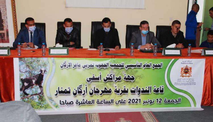 تأثث المشهد الجمعوي المهني بمولود جديد يحمل إسم الجمعية الجهوية لمربي ماعز الأركان على إثر الجمع العام التأسيسي بقرية مهرجان أركان بتمنار يوم الجمعة 12 نونبر 2021 بحضور أسماء وازنة بالقطاع الفلاحي.