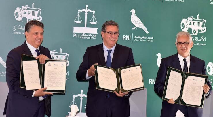 وقع التحالف الحكومي الثلاثي المكون من حزب التجمع الوطني للأحرار والأصالة والمعاصرة وحزب الاستقلال، اليوم الإثنين، “ميثاق الأغلبية ” من أجل تحقيق التعاون وتعميق الانسجام بين مكوناتها.