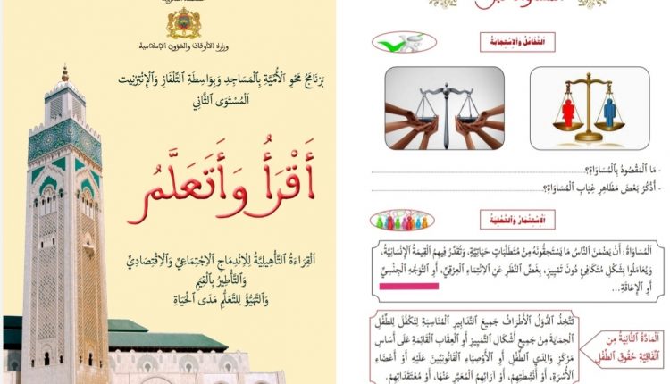 وجاء في سؤال المجموعة، وقعه النائب مصطفى ابراهيمي، أن مرجعا من المراجع المعتمدة من طرف وزارة الأوقاف والشؤون الإسلامية، في برامجها لمحو الأمية بالمساجد، يحمل عنوان “أقرأ وأتعلم”، تضمّن في الصفحة رقم 124، ضمن مكون “الأخلاق”، نصا من درس “المساواة نبل”، به إشارات واضحة للشذوذ الجنسي.