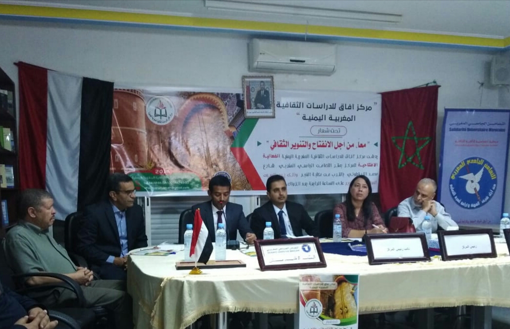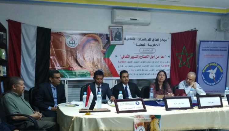 دشن مركز آفاق للدراسات الثقافية المغربية اليمنية الفعالية الافتتاحية بمركز التضامن الجامعي المغربي بفاس عاصمة المغرب العلمية والثقافية عصر يوم السبت الموافق 19 أكتوبر على الساعة الخامسة عصرا، وقد شهدت الفعالية حضورا بهيا، وجمعا مشرّفا، وتفاعلا جماهيريا من أساتذة جامعيين، ورؤساء جمعيات، وأدباء، ومفكرين، من المغرب، واليمن، ومصر، وجنوب السودان، وقد افتتح الفعالية الدكتور ماجد قائد مسيّر الفعالية، ونائب رئيس المركز عضو الهيئة التدريسية المساعدة بجامعة أبين مرحبا بالحضور وشاكرا دعمهم، كما نوّه بجهود السلطات المحلية، ودور المملكة المغربية ملكا وحكومة وشعبا، في تمتين العلاقات الثقافية بين الحضارات والشعوب، واصفا الافتتاحية بالحدث الهام والمهم في مسيرة الحركة الثقافية المغربية اليمنية، وأكد أن الحدث يمثل تعانق الشعبين بجبالهما ومدنهما وشعبهما، يزاوج الأفكار، ويواشج الثقافات، ويمازج الرؤى، وقد بدأ الحفل بآيات من الذكر الحكيم تلاها فضيلة الدكتور عمار اليوسفي، بعدها تُلي النشيدان الوطنيان المغربي واليمني، وتحدث نائب المركز (مسيّر الجلسة) عن صناعة الحدث وصناعة الثقافة، وثمّن جهود مركز التضامن الجامعي المغربي في إتاحته الفضاء لإقامة الفعالية، وأعطى الكلمة للأستاذ عبد الفتاح بناني الكاتب الإقليمي لمكتب التضامن الجامعي المغربي فرع فاس الذي رحب بالحضور، وتحدث عن عمق العلاقات الأخوية المغربية اليمنية، كما أشاد بدور المركز ورسالته التنويرية، وعد ّالمركز أول كيان ثقافي عربي يقيم نشاطا داخل مركز التضامن الجامعي المغربي، مرحبا بالمركز ونشاطاته الثقافية، وأن أبواب المركز مفتوحة لإقامة نشاطات فكرية وثقافية لما فيه مصلحة الشعبين الشقيقين، بعدها شكره مسيّر الجلسة على كلمته القيمة، وأعطى الكلمة لرئيس المركز الدكتور أحمد الحسني من جامعة عدن الذي تحدث عن فكرة إنشاء المركز، وما يحمله من رسائل سامية وقيّمة، ساردا المشاريع والبرنامج المستقبلية للمركز، ونشاطاته القادمة، وأن المركز يتطلع إلى مد جسور الثقافة بين الأمة العربية والإسلامية، والأمم الأخرى لتحقيق ثقافة التعايش والسلام والمحبة بين الأمم والشعوب، منوها أن المركز يهدف إلى ترميم جسور الثقافة التي شهدت فتورا في الآونة الأخيرة بين مشرق الأمة ومغربها، وقال: إن هناك تجارب ناجحة للمغرب في مجالات فكرية وثقافية وأدبية وعلمية يمكن تصديرها والاستفادة منها، وخصوصا في حقول الأدب واللسانيات، والنقد والفكر الحداثة، وأن المركز سيقوم بنشر كتب ودوريات تتعلق بالشأن الثقافي والفكري، ورحب بأي جهود تصب في هذا الحقل، واختتم كلمته بشكر الحضور الكريم، ورفع برقية شكر وامتنان للمغرب ممثلا بجلالة الملك محمد السادس حفظه الله وإلى حكومة المغرب، وكل القائمين على هذا البلد الكريم، وإلى الشعب المغربي الأصيل، بعدها شكر مسيّر الفعالية رئيس المركز على كلمته الهادفة والجامعة المانعة، وعرج على ذلك بمقولة لأمين معلوف “كلما شعر المهاجر بأن ثقافته الأصلية محترمة، انفتح أكثر على ثقافة البلد المضيف”، بعدها نقل الكلمة للصوت النسوي الذي لا يكتمل المقام إلا به، وكان من دور كاتبة المركز الدكتورة أسماء وردي التي تحدثت عن أهمية المركز، وما يمثله من دور تنويري في الثقافات عامة، وأكدت أن المغرب اليوم بفضل استقراره السياسي وموقعه الجغرافي قادر على لعب دور رئيسي في أمته العربية والإسلامية من جهة والحضارات الغربية من جهة أخرى، مؤكدة أن المركز كيان ثقافي مستقل ليس له انتماء من أي شكل أو نوع على الإطلاق، وأن مساره ثقافي فكري أدبي بامتياز، وبشّرت الجميع أن المركز سيكون له حضور لافت في المسارات الثقافية الوطنية والعربية والعالمية والأممية، شاكرة جهود الجميع، وتناولت في كلمتها توجهات المركز ومهامه القادمة والمستقبلية، معربة عن أملها في أن تصل رسالة المركز التنويرية وتطلعاته إلى الشعوب والأمم، مؤكدة أن المغرب واليمن عنوانان عريضان 