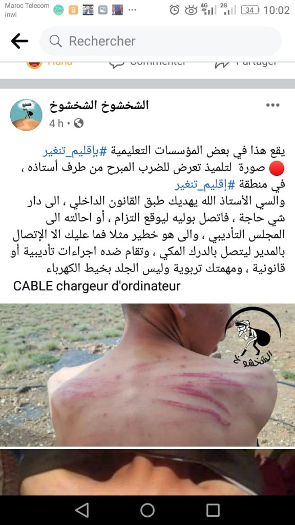 تنغير.. واقعة تلاميذ يتعرضون للعنف والضرب ب”كابل شارجور” يشعل رواد التواصل