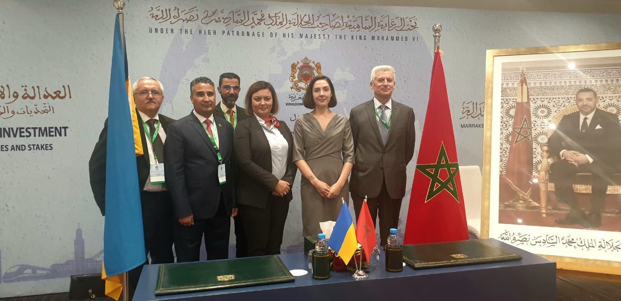 وقد شهدت فعاليات هذا المؤتمر توقيع مذكرة تفاهم بين وزارة العدل باوكرانيا ووزارة العدل بالمملكة المغربية بحضور وزير العدل المغربي ونائبة وزير العدل بدولة اوكرانيا ووفد رفيع من السفارة الاوكرانية ى وذ. الادريسي محمد القنصل الشرفي لاوكرانيا بجهة مراكش،وطاقم القنصلية الفخرية لاوكرانيا بمراكش.