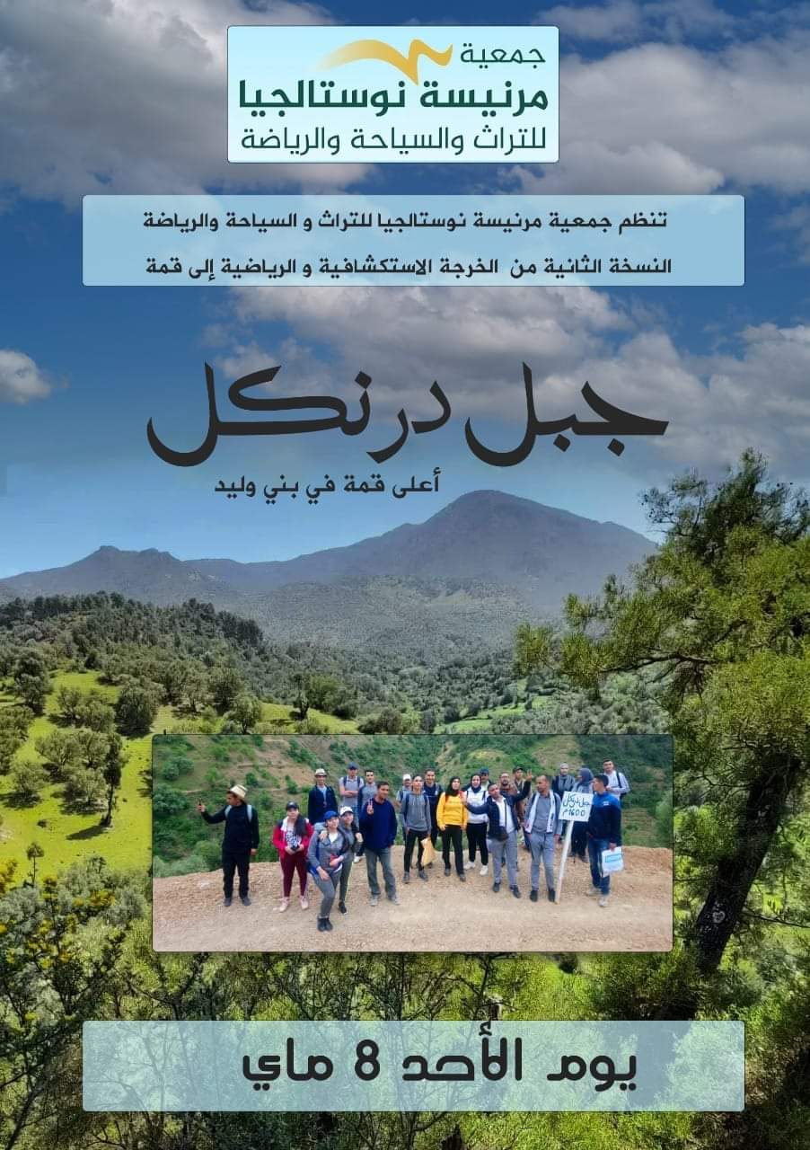 تنظم جمعية مرنيسة نوستالجيا للتراث والسياحة والرياضة النسخة الثانية من  الخرجة الاستكشافية والرياضية، إلى قمة جبل درنكل أعلى قمة في بني وليد( 1600م)، وذلك يوم الأحد المقبل.