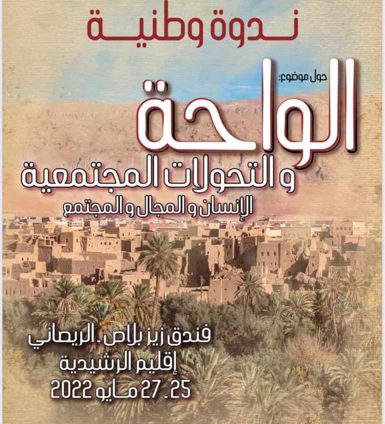 الإنسان، والمجال، والمجتمع» وذلك أيام 25 – 27 مايو 2022، بالمركز الثقافي بمدينة الريصاني.