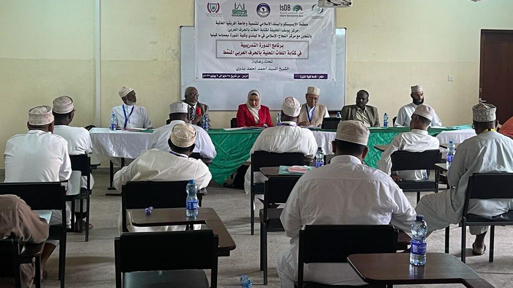 يعقد مركز الإيسيسكو للغة العربية للناطقين بغيرها، بمنظمة العالم الإسلامي للتربية والعلوم والثقافة (إيسيسكو)، دورة تدريبية في جمهورية كينيا، حول “كتابة اللغات الإفريقية المحلية بالحرف العربي المنمّط”، بالتعاون مع البنك الإسلامي للتنمية، وجامعة إفريقيا العالمية من خلال مركز يوسف الخليفة لكتابة اللغات بالحرف العربي بالسودان، ومركز النجاح الإسلامي في مالندي، وكلية المنورة بمدينة مومباسا.