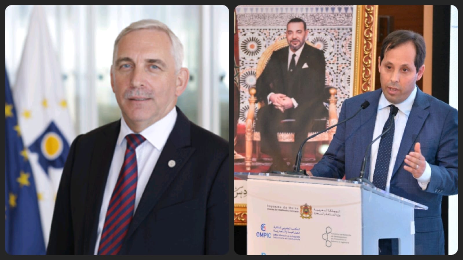 انعقد اجتماع ثنائي عن بعد جمع المكتب المغربي للملكية الصناعية والتجارية (OMPIC) ومكتب الاتحاد الأوروبي للملكية الفكرية (EUIPO) بتاريخ 31 ماي 2022. وترأس الاجتماع كل من السيد عبد العزيز ببقيقي، المدير العام للمكتب المغربي للملكية الصناعية والتجارية والسيد كريستيان أرشامبو، المدير التنفيذي لمكتب الاتحاد الأوروبي للملكية الفكرية.
